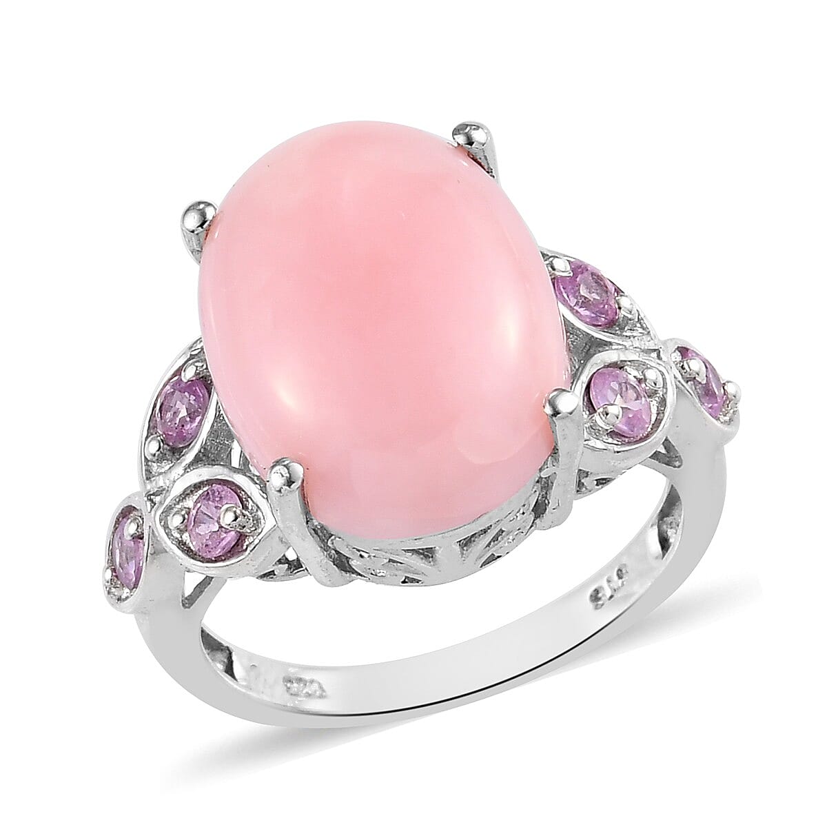 Peruvian Pink Opal and Madagascar Pink Sapphire Ring in Platinum Over Sterling Silver (Size 7.0) 7.75 ctw