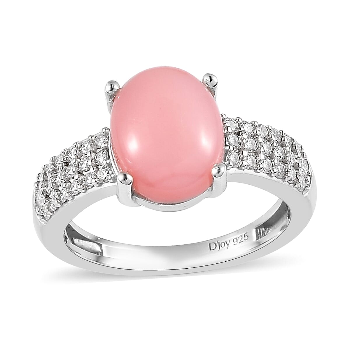 Peruvian Pink Opal and Moissanite Ring in Platinum Over Sterling Silver (Size 9.0) 2.75 ctw