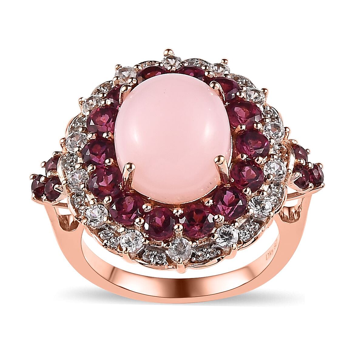 Peruvian Pink Opal and Multi Gemstone Cocktail Ring in Vermeil Rose Gold Over Sterling Silver (Size 9.0) 7.35 ctw