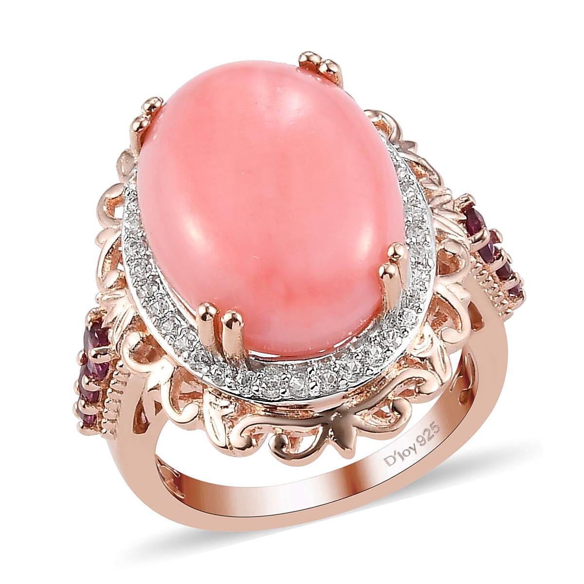 Peruvian Pink Opal and Multi Gemstone Ring in Vermeil Rose Gold Over Sterling Silver 10.85 ctw