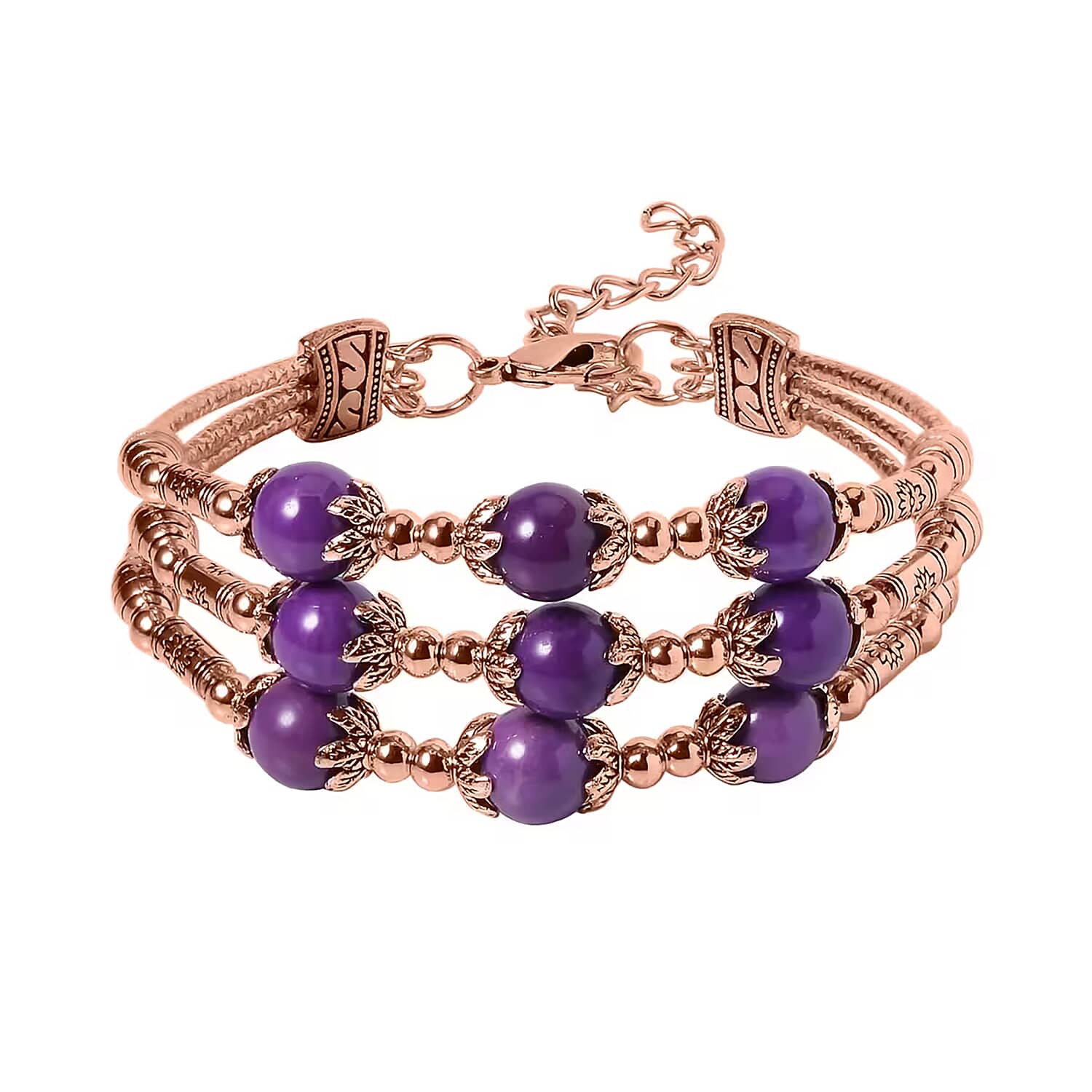 Phosphosiderite 3 Row Station Bracelet in Rosetone (7-9In) 68.50 ctw