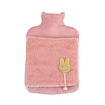 Pink 2L Hot Water Bag with Rabbit Faux Fur Cover