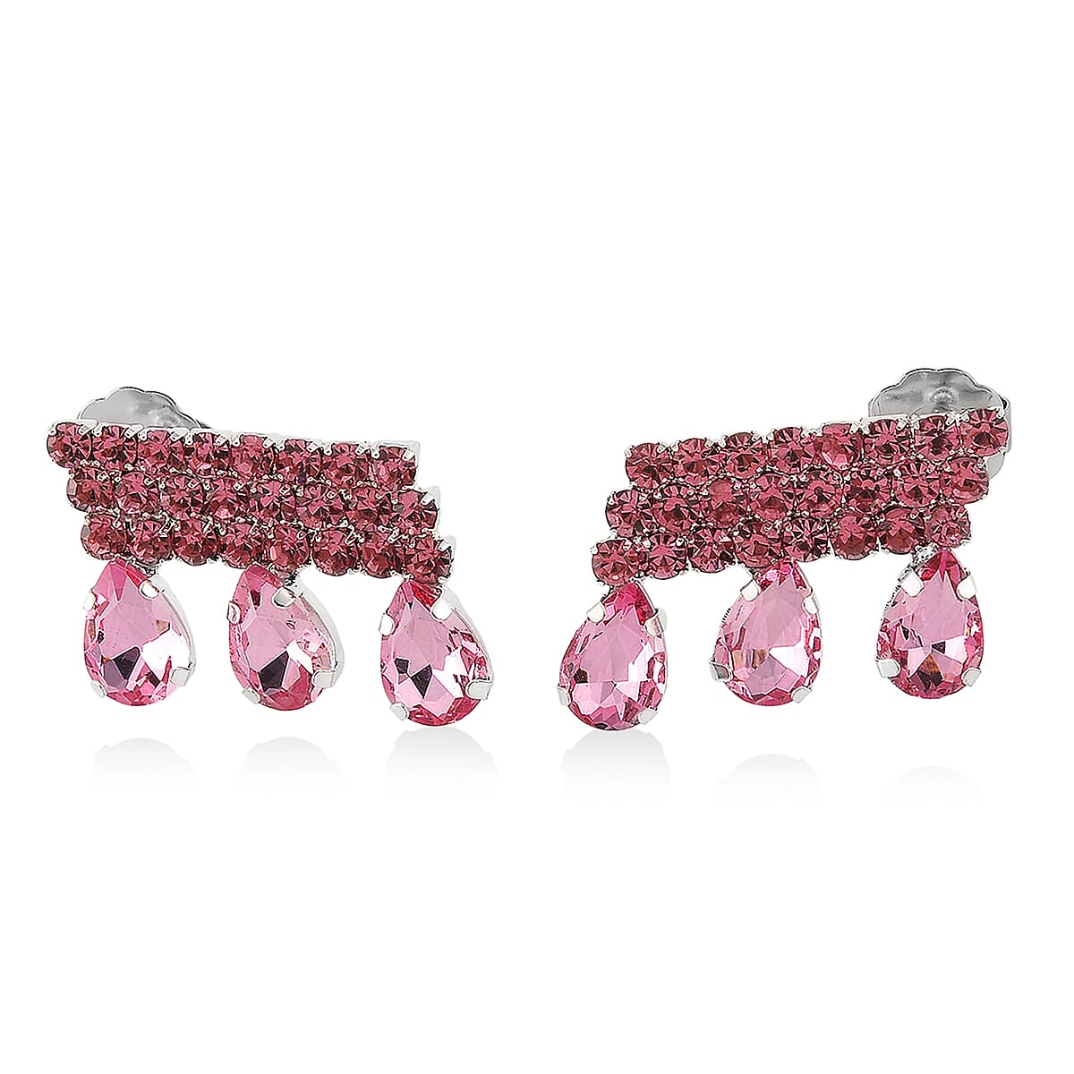 Pink Austrian Crystal Dripping Earrings in Silvertone