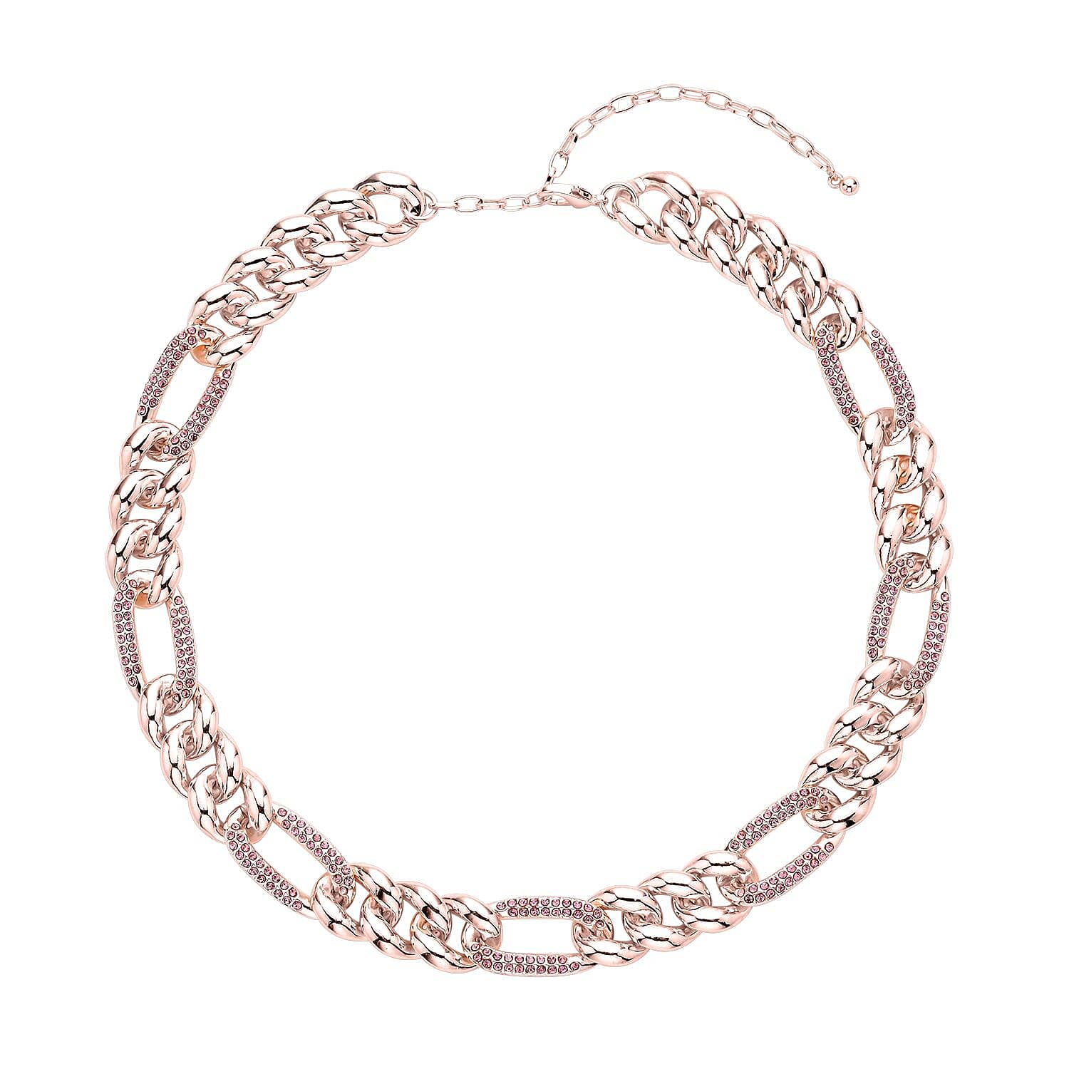 Pink Austrian Crystal Figaro Link Necklace (18.5-22.50 Inches) in Rosetone