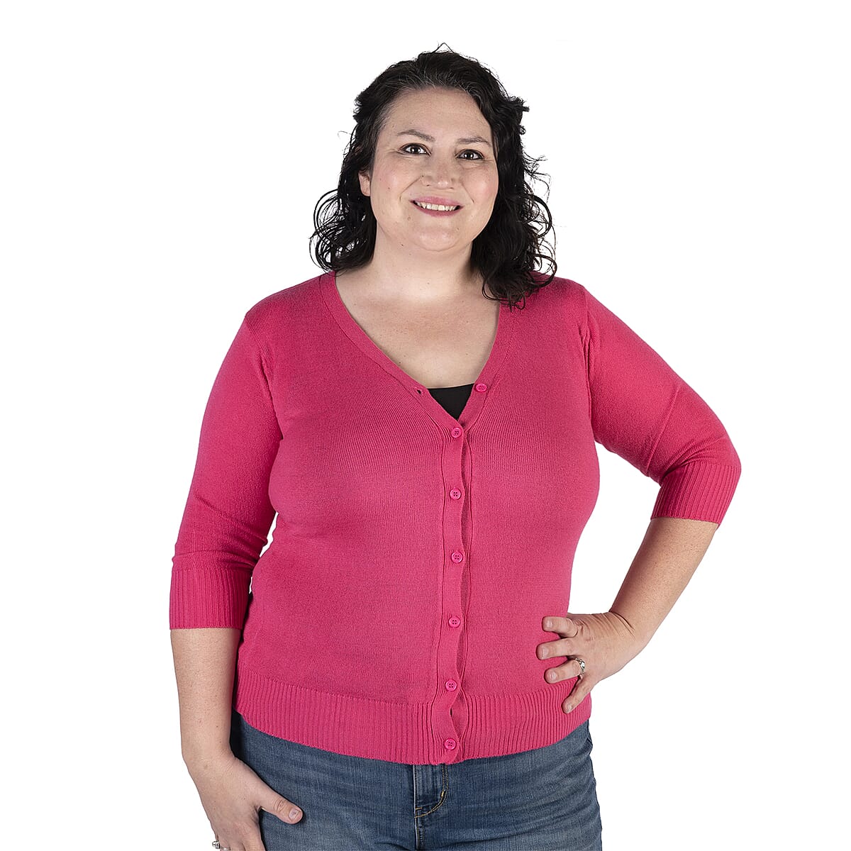 Pink Button-up Basic 3/4 Sleeve Cardigan (L, 100% Acrylic)