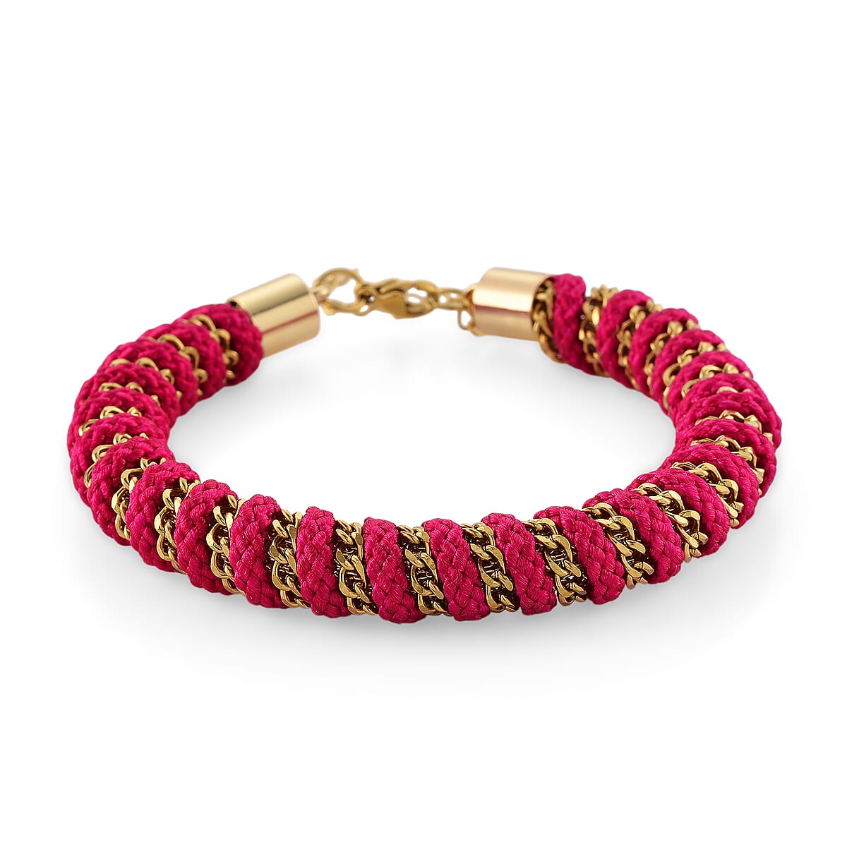 Pink Color Cord Bracelet in ION Plated YG Stainless Steel (8-10In)