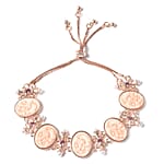 This bolo bracelet features an elegant blend of resin, Austrian crystals, and simulated pearls, meticulously crafted in durable metal. The adjustable bolo closure ensures a perfect fit for any wrist size, enhancing wearability. This cameo bracelet is a stunning accessory that effortlessly combines modern style with classic elements.