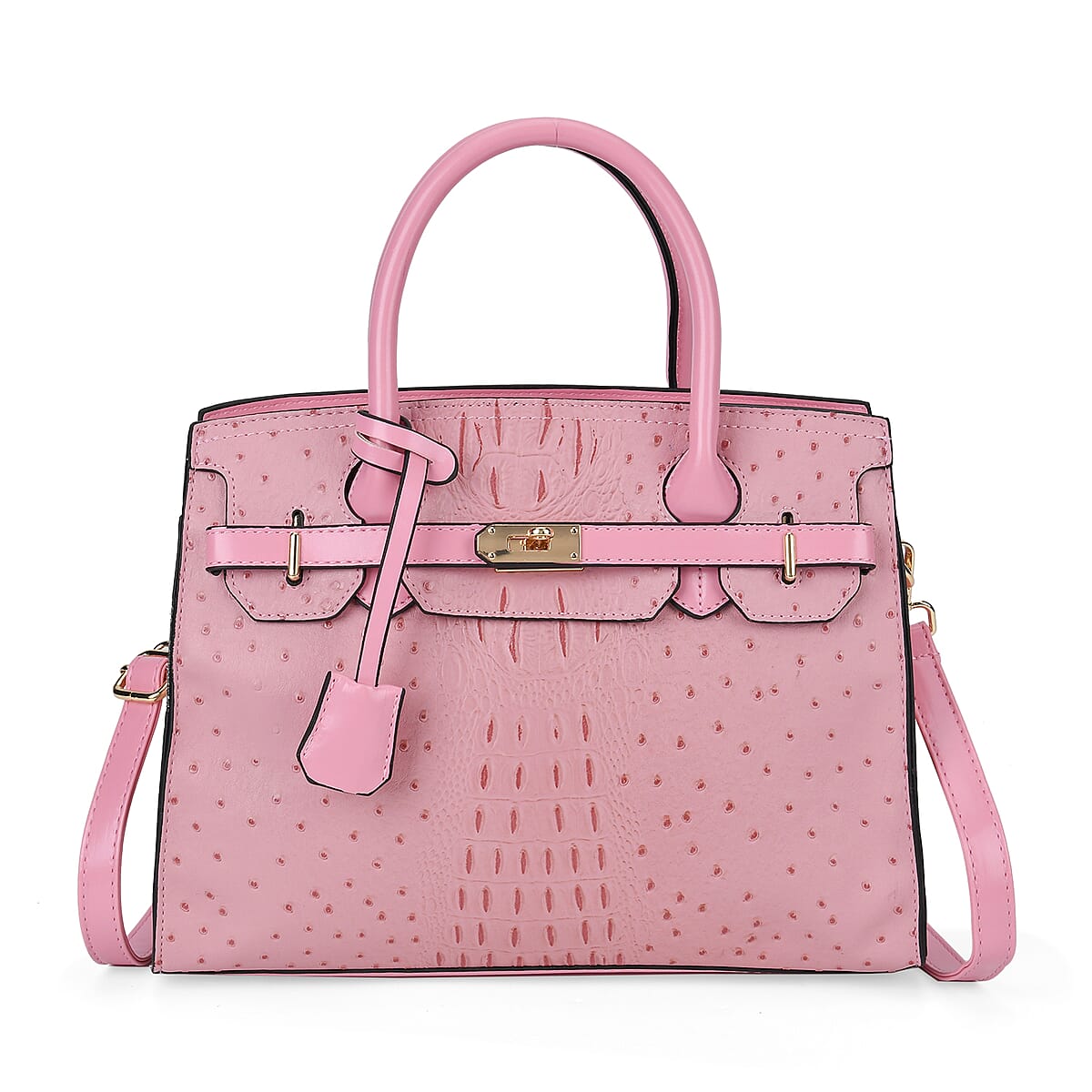 Pink Croco Embossed Faux Leather Tote Bag with Shoulder Strap