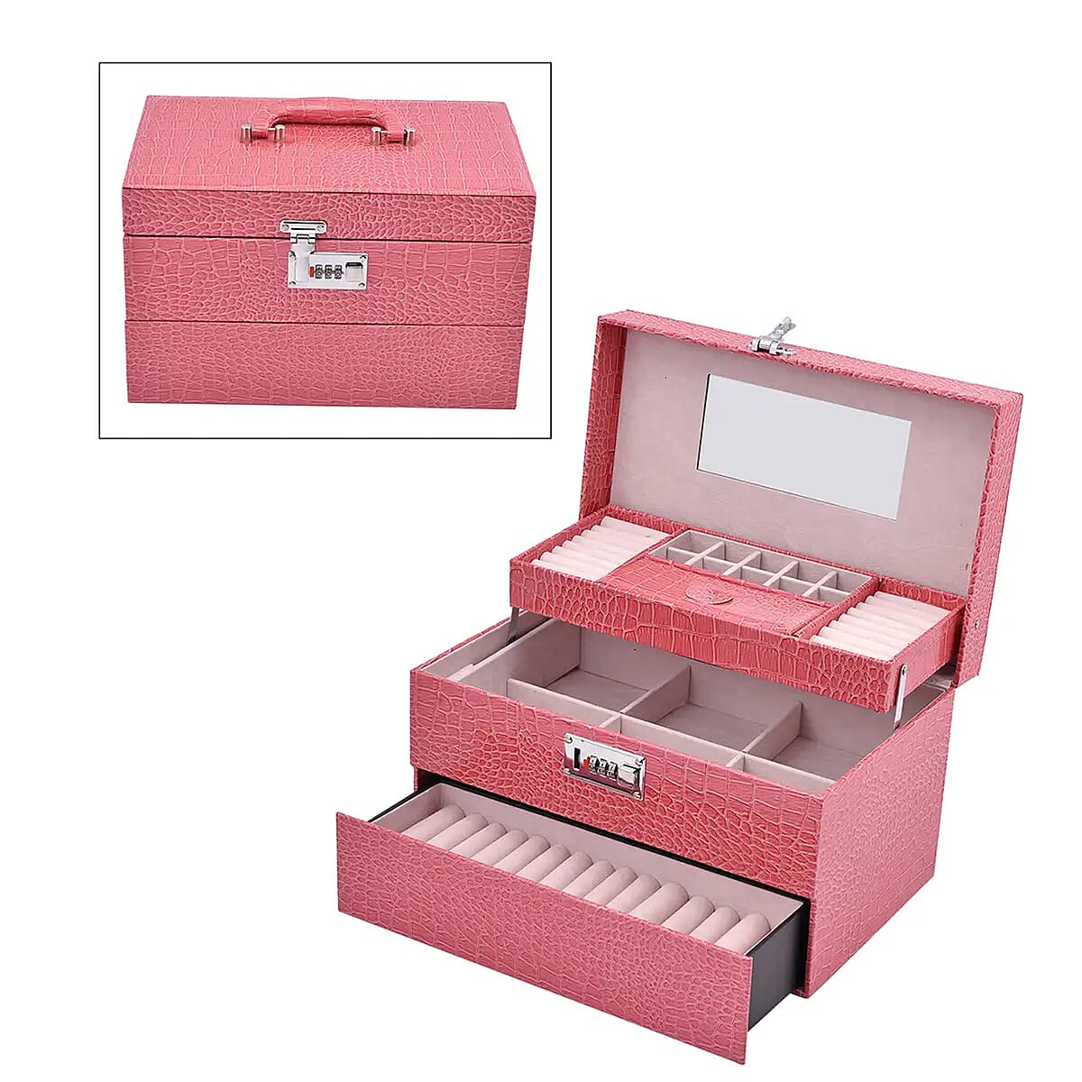 Pink Crocodile Embossed Faux Leather Convertible Jewelry Box with Padlock, Jewelry Storage Box for Women, Jewelry Case, Jewelry Organizer