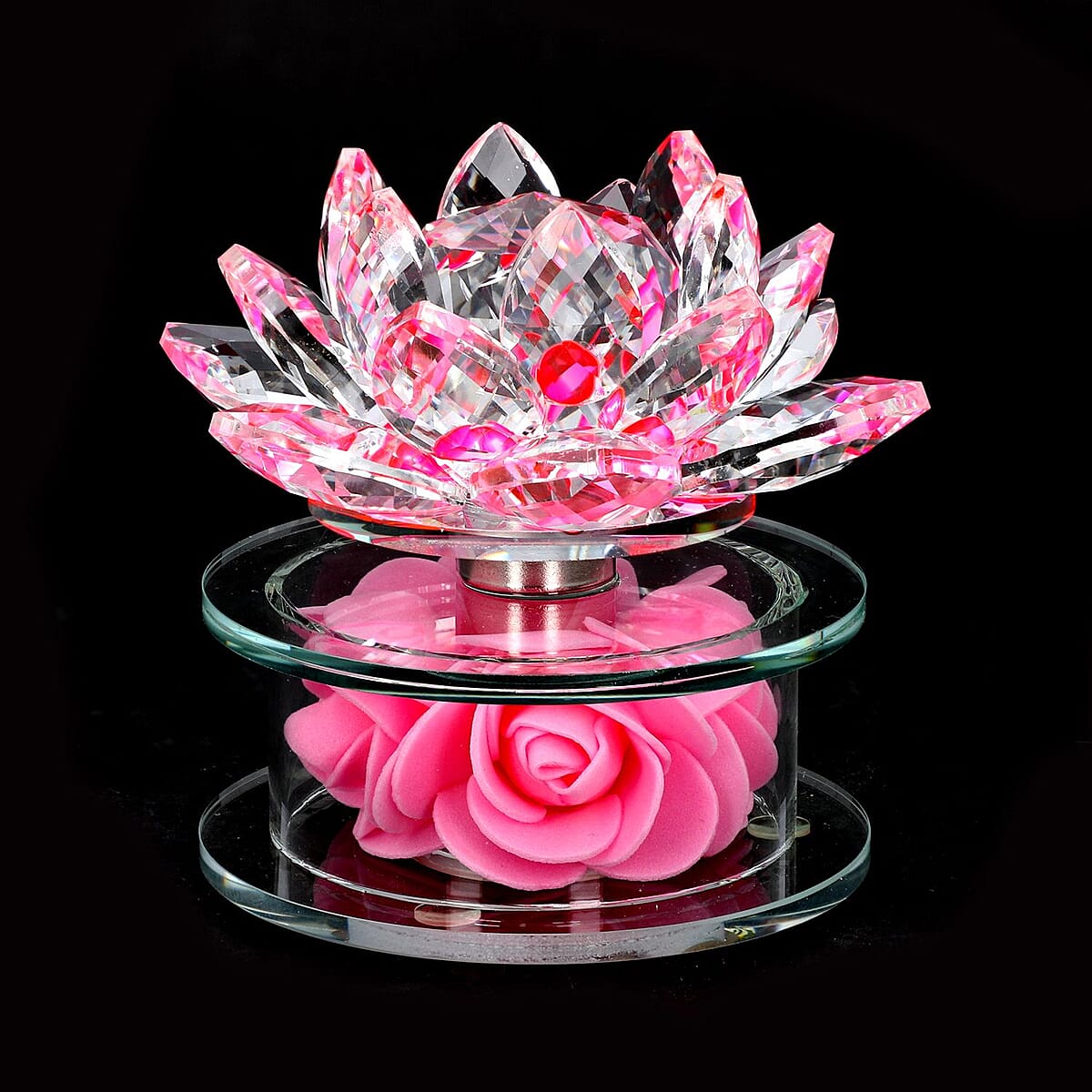 Pink Crystal Lotus Flower in Rotating Base with Multi Color Led Light