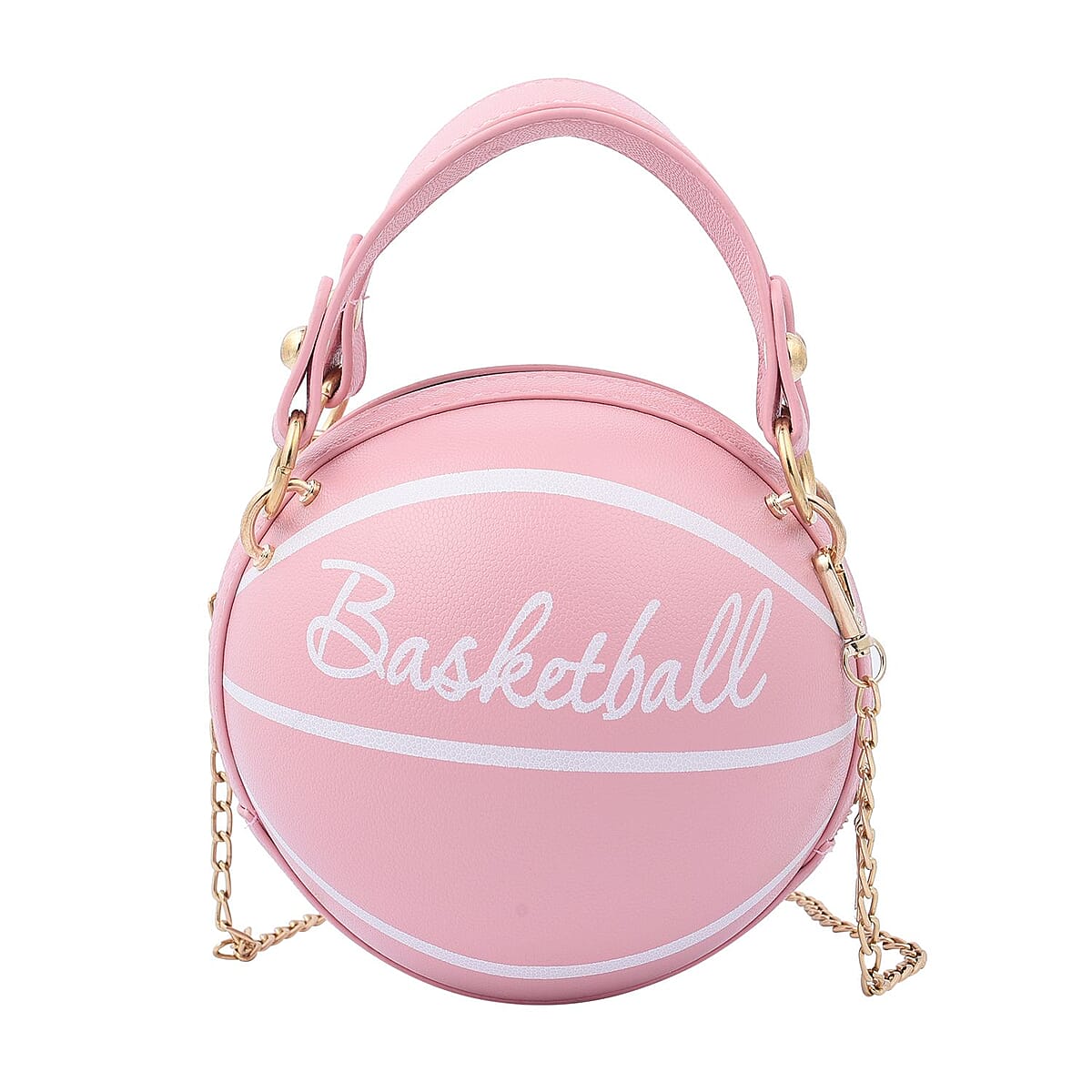 Pink Faux Leather Basket Ball Shaped Crossbody Bag with Double Handle Drop and Chain Shoulder Strap