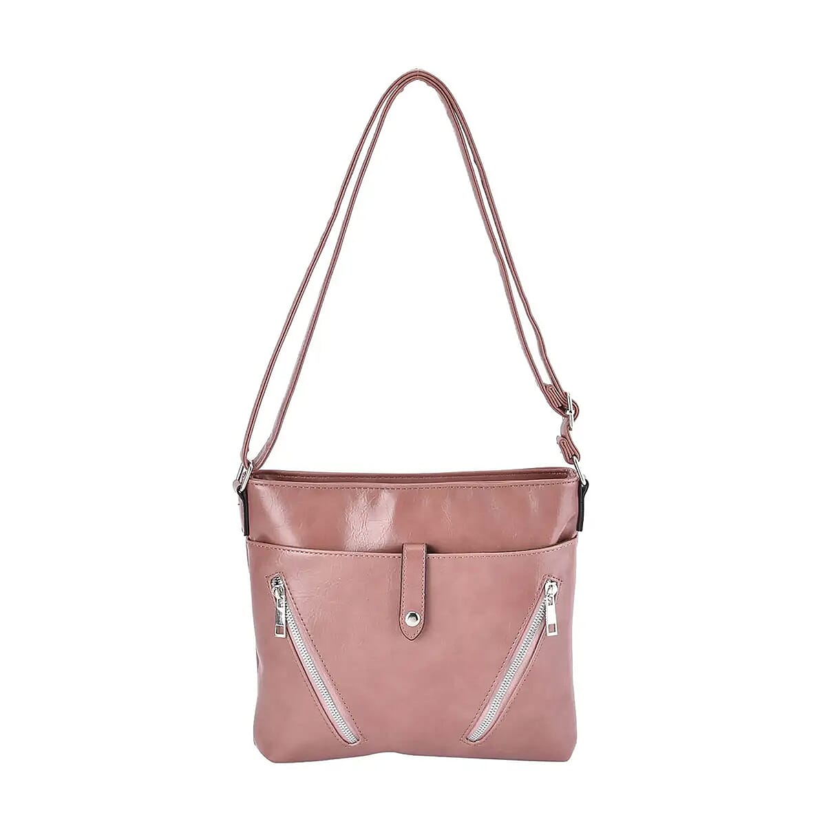 Pink Faux Leather Crossbody Bag with Shoulder Strap
