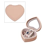 Pink Faux Leather Heart Shape Jewelry Box with Mirror (5 Ring Row, 2 Section) (3.94"x3.5"x2")