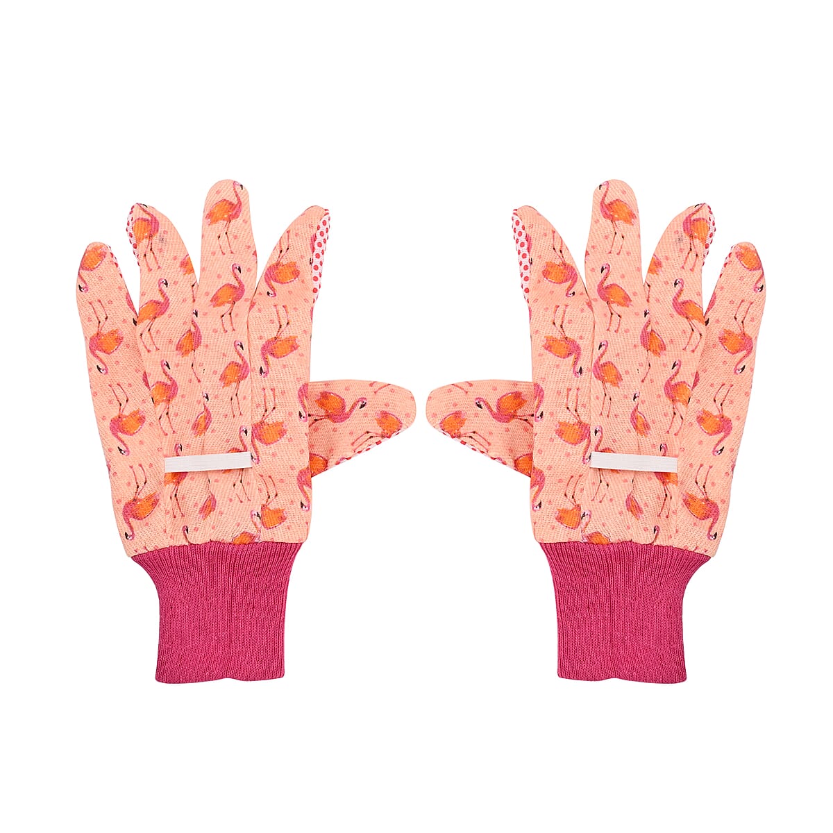 Pink Flamingo Garden Gloves Ladies Poly with Dot Palm 6asst Prints/l&g Tcd