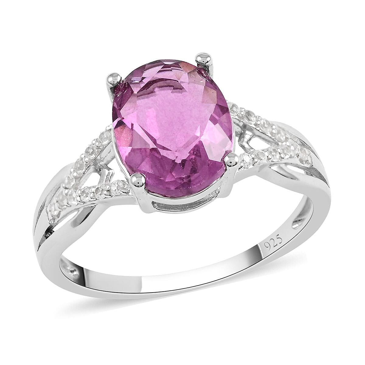 An epitome of elegance and beauty, this pink fluorite ring is a perfect piece of jewelry to own. Made from sterling silver, the ring features an oval-shaped pink fluorite gem set in the prong setting. Prong setting ensures maximum stone visibility with great hold. This pink-colored gemstone ring has been modified by having a split shank with a modern touch. The shank has been adorned with sparkling white zircon rounds set in the prong setting. This pink fluorite ring can be your favorite accessory if you love feminine hues. Pure fluorite is colorless. The pink hues are caused in this gemstone due to certain impurities.