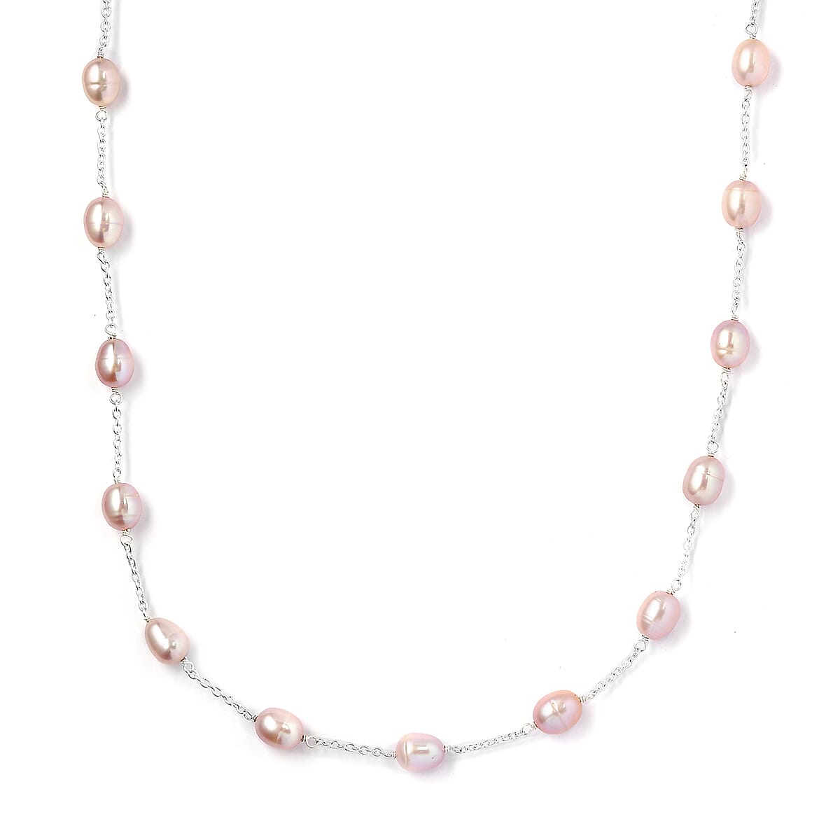 Pink Freshwater Pearl Station Necklace 18 Inches in Sterling Silver 41.60 ctw