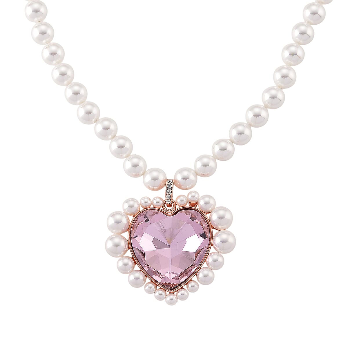 Pink Glass, Multi Gemstone Heart Necklace in Rosetone (20 Inches)