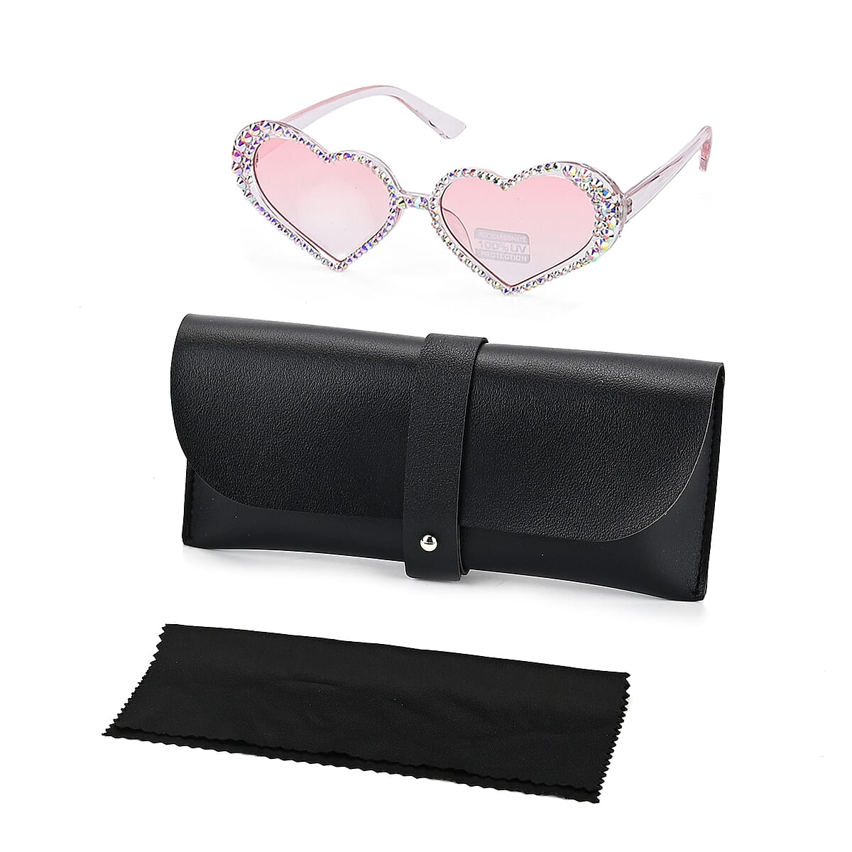 Pink Heart Shape UV400 Sunglasses with Pink Artificial Crystal Frame