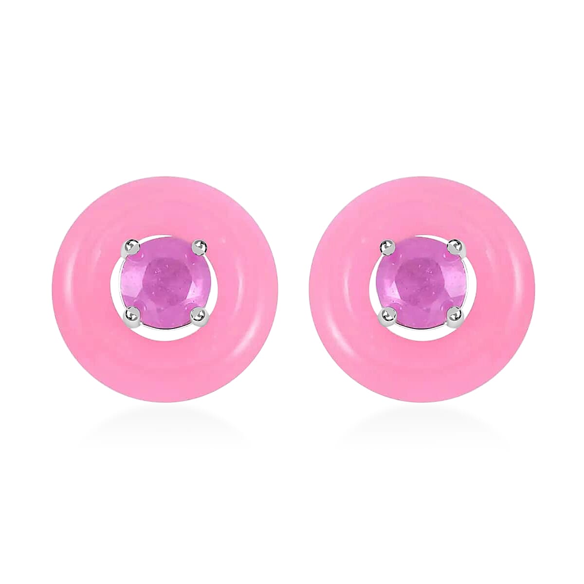 Pink Jade (D) 19.20 ctw Jacket Earrings, Ilakaka Hot Pink Sapphire (FF) Jacket Stud Earrings, Rhodium Over Sterling Silver Earrings, Jade Jewelry, Sapphire Earrings