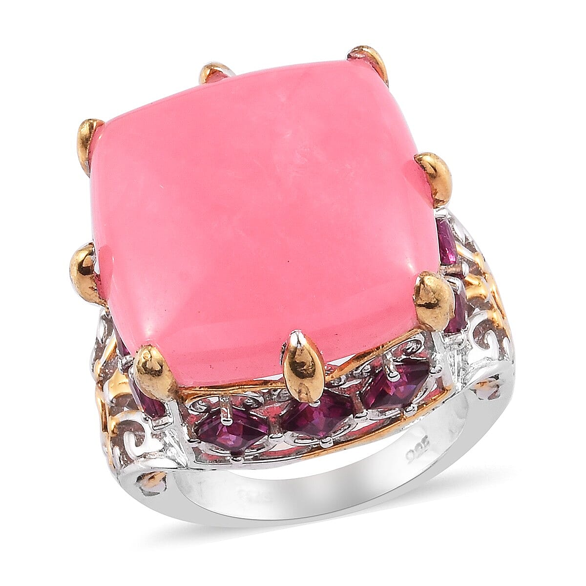 Pink Jade (D) and Orissa Rhodolite Garnet Ring in 14K YG Over and Platinum Over Sterling Silver (Size 6.0) 20.15 ctw