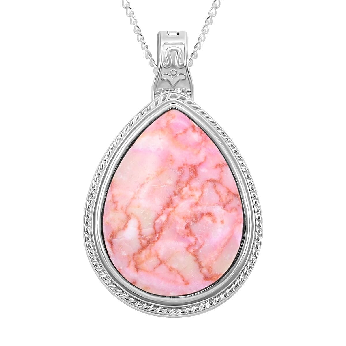 Pink Matrix Jasper Drop Magnetic Pendant Necklace 18 Inches in Silvertone 20.10 ctw