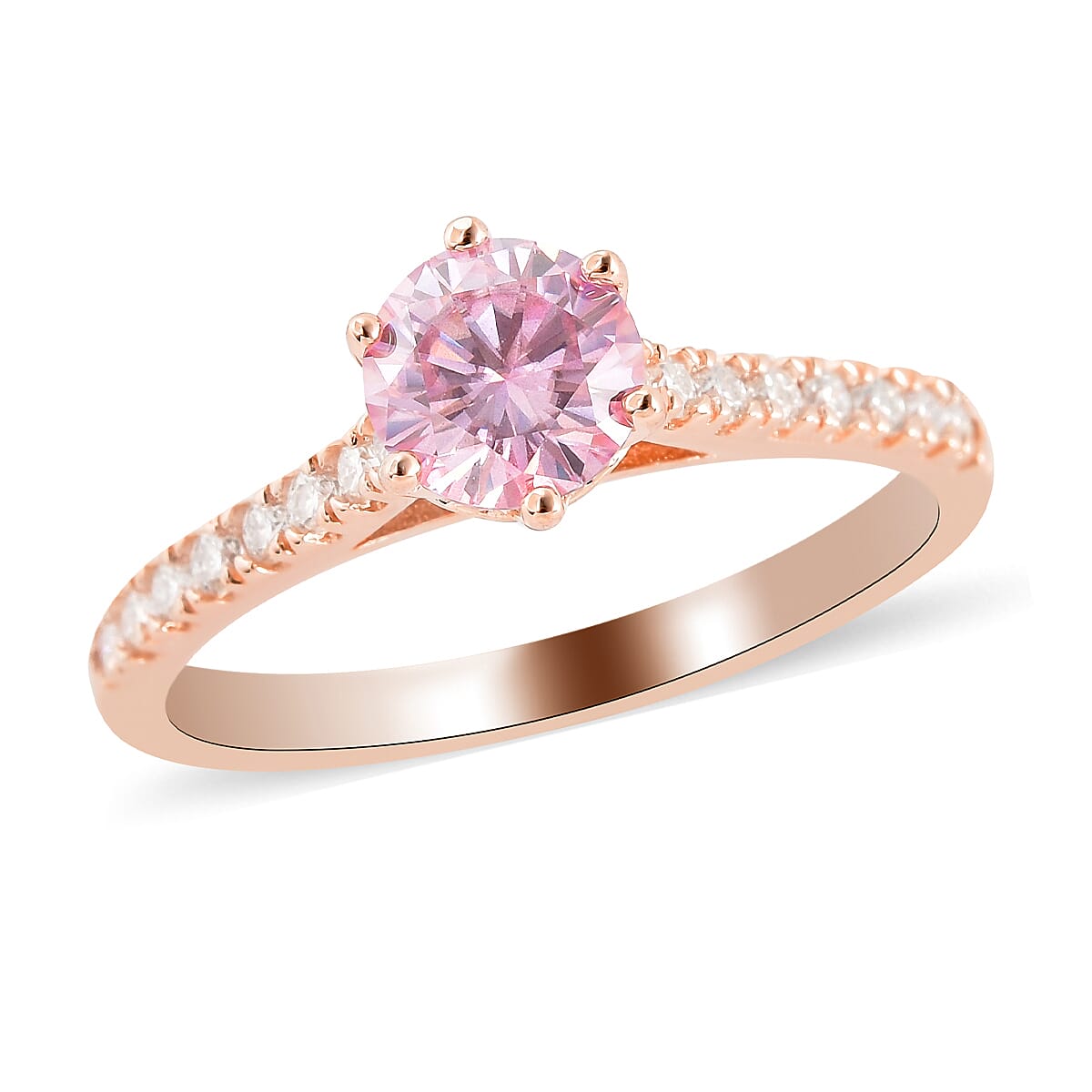 Pink Moissanite and Moissanite Ring in Vermeil Rose Gold Over Sterling Silver (Size 8.0) 1.00 ctw