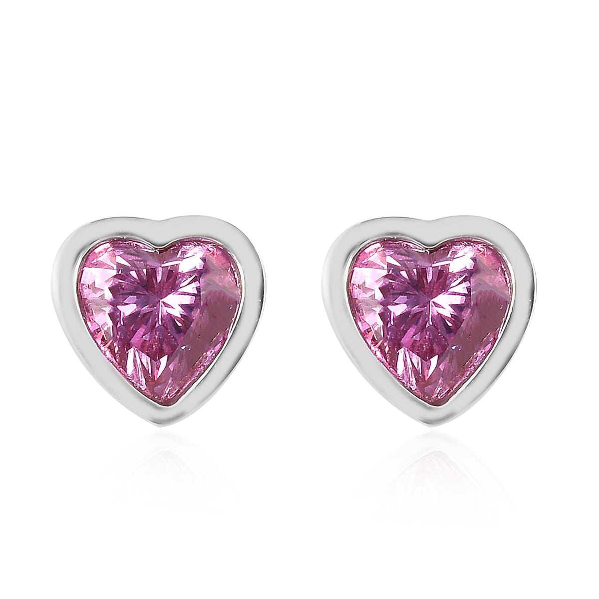 Pink Moissanite Stud Earrings in Rhodium Over Sterling Silver 1.00 ctw