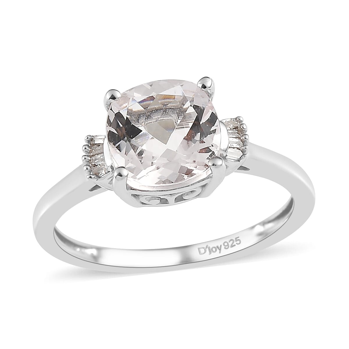 Pink Morganite and Diamond Ring in Platinum Over Sterling Silver (Size 7.0) 1.85 ctw