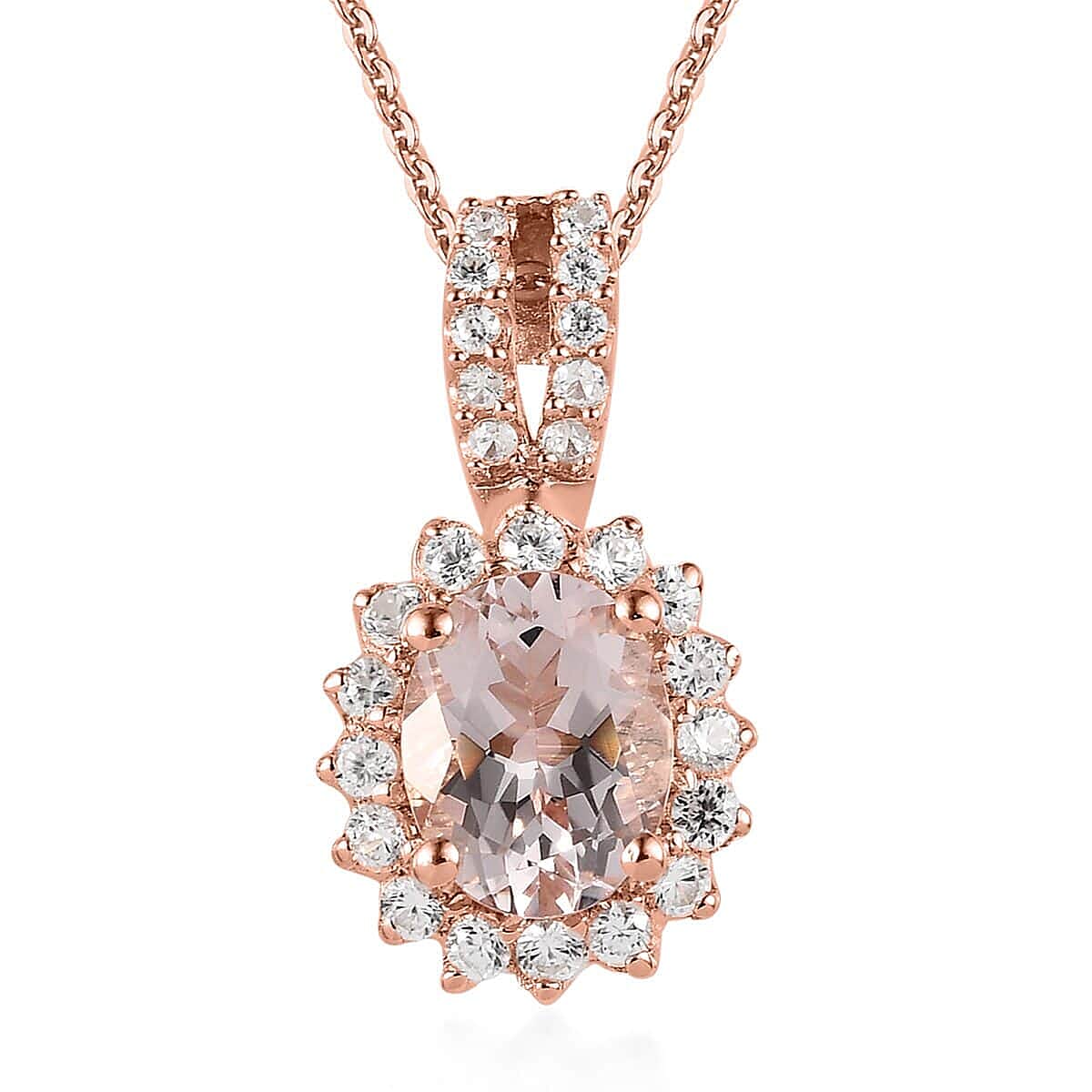 Pink Morganite and Multi Gemstone Floral Pendant Necklace 20 Inches in Vermeil Rose Gold Over Sterling Silver 1.85 ctw