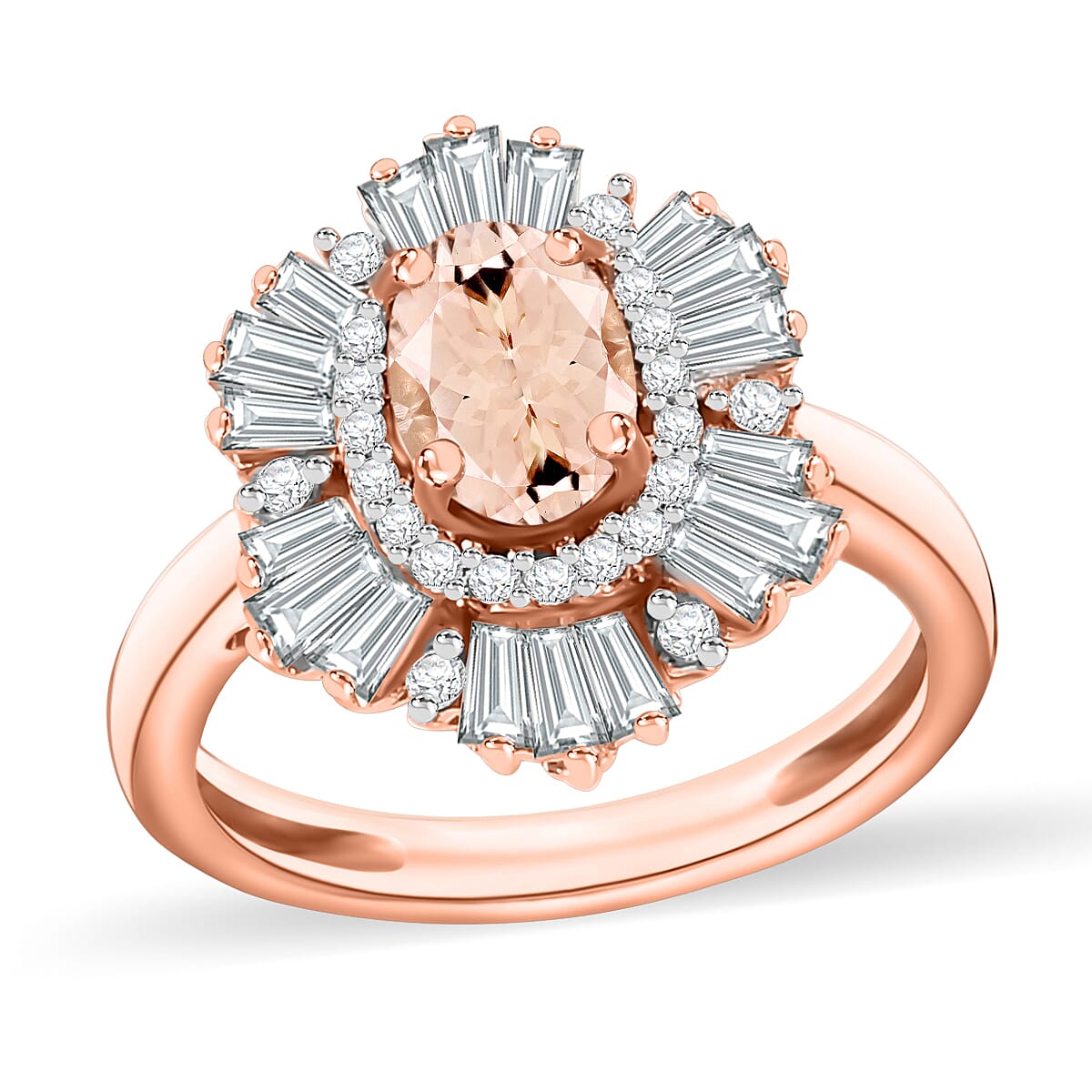 Pink Morganite and White Zircon 2.90 ctw Ring in 18K Vermeil Rose Gold Over Sterling Silver (Size 7.0) (Del. in 10-12 Days)