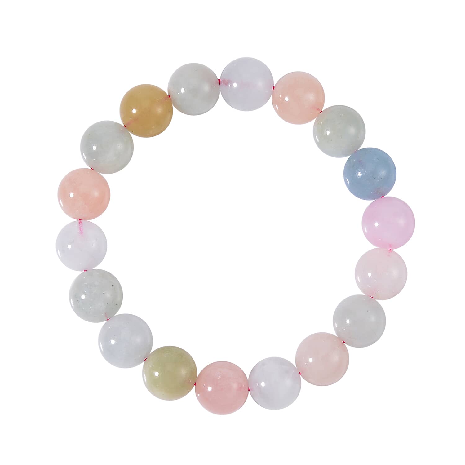 Pink Morganite, Aquamarine, Heliodor Beaded Stretch Bracelet 190.00 ctw