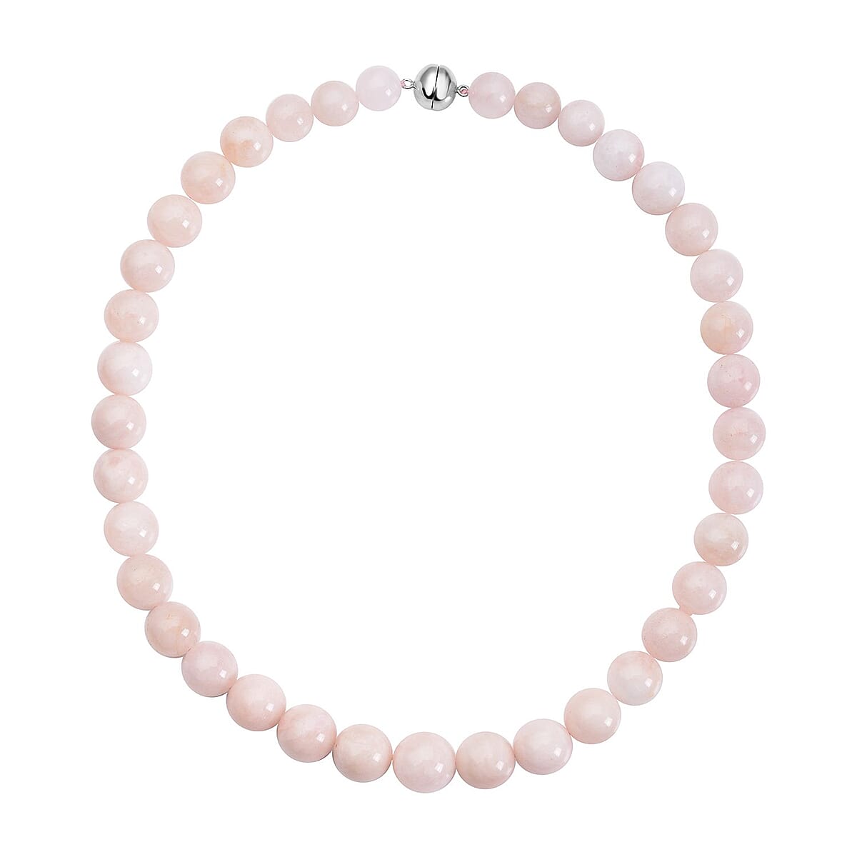 Pink Morganite Beaded Necklace 20 Inches with Magnetic Lock in Rhodium Over Sterling Silver 696.50 ctw
