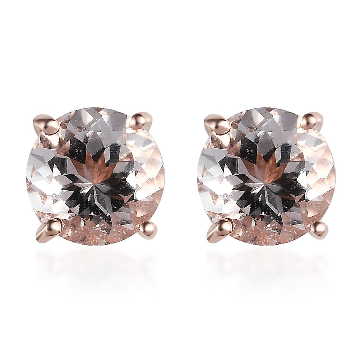 Pink Morganite Solitaire Stud Earrings in Vermeil Rose Gold Over Sterling Silver 1.50 ctw