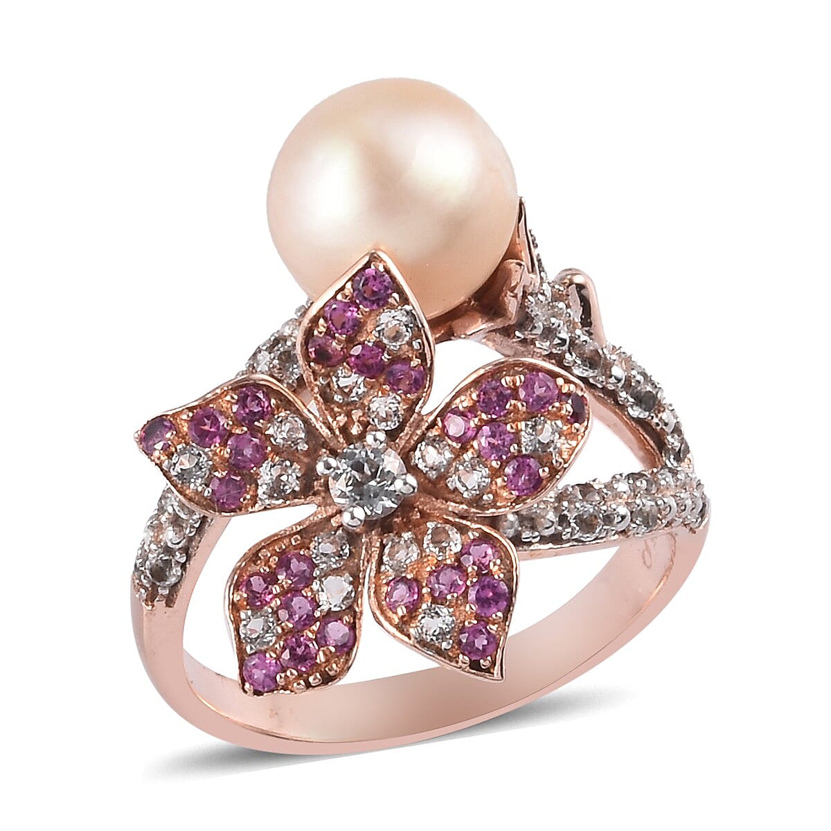 Pink Pearl and Multi Gemstone Ring in 14K Rose Gold Over Sterling Silver (Size 10.0) 0.70 ctw