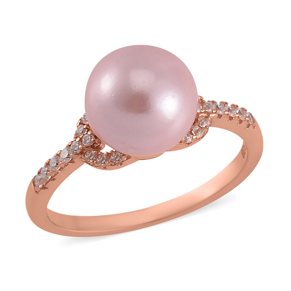 Pink Shell Pearl and Simulated Diamond Ring in 14K Rose Gold Over Sterling Silver (Size 5.0) 0.20 ctw