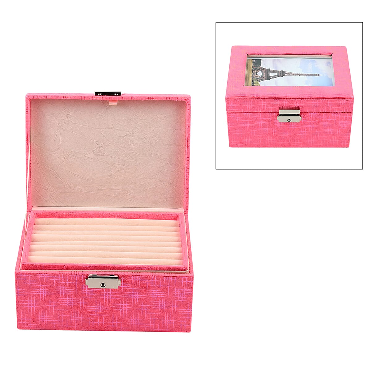 Pink Velvet Picture Photo Frame Display Jewelry Organizer with Glass Window (7.68x5.71x4.33)