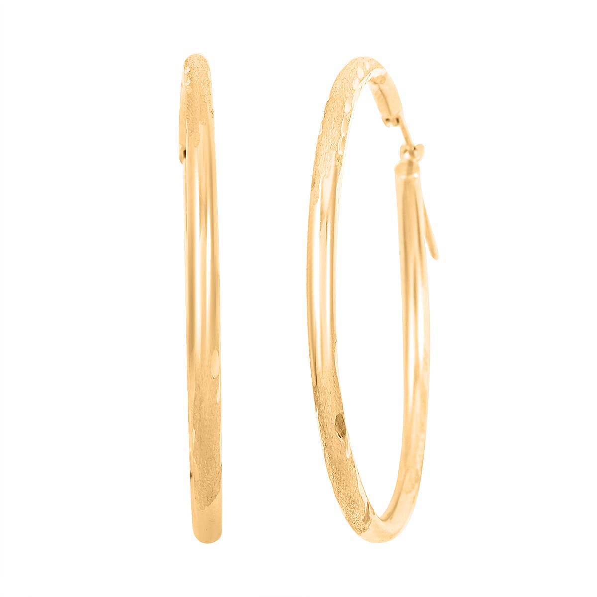 Pipe Diamond-cut 2x34.8mm Hoop Earrings in 10K Yellow Gold 1.6 Grams