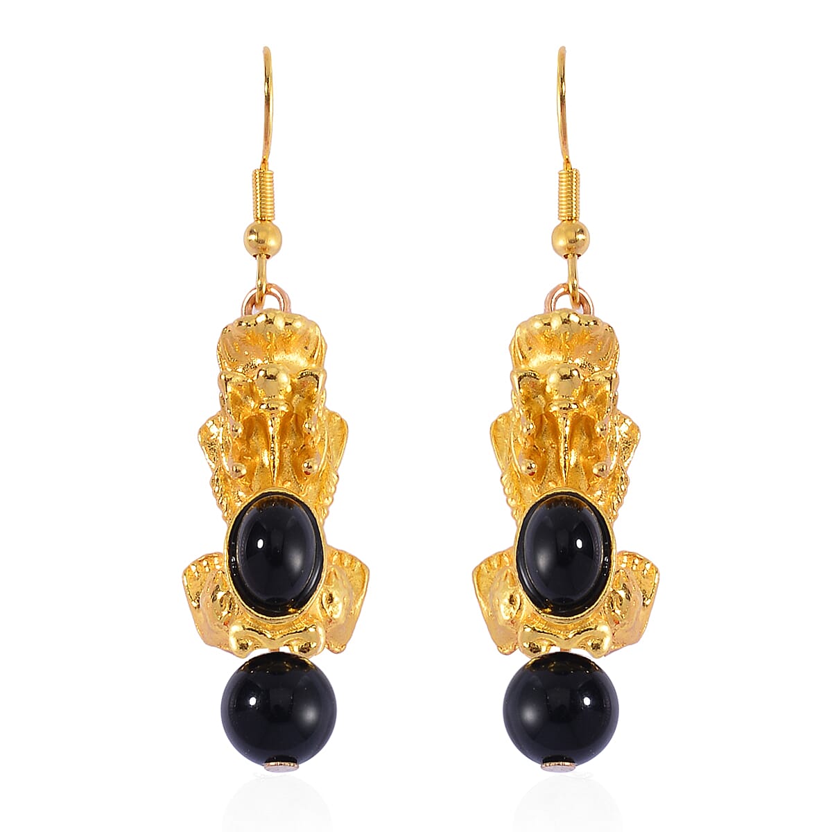 Pixiu Feng Shui Black Obsidian Earrings in Goldtone and ION Plated YG Stainless Steel 16.25 ctw