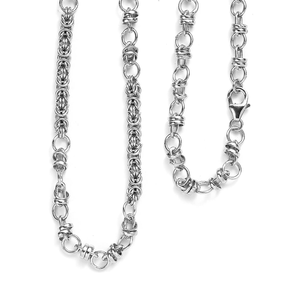 Elevate your style with the sterling silver Byzantine link chain necklace. Meticulously crafted, this necklace weaves a tale of luxury and elegance. Featuring a secure lobster clasp, it embodies sophistication. Indulge in this timeless piece and let your fashion statement echo.