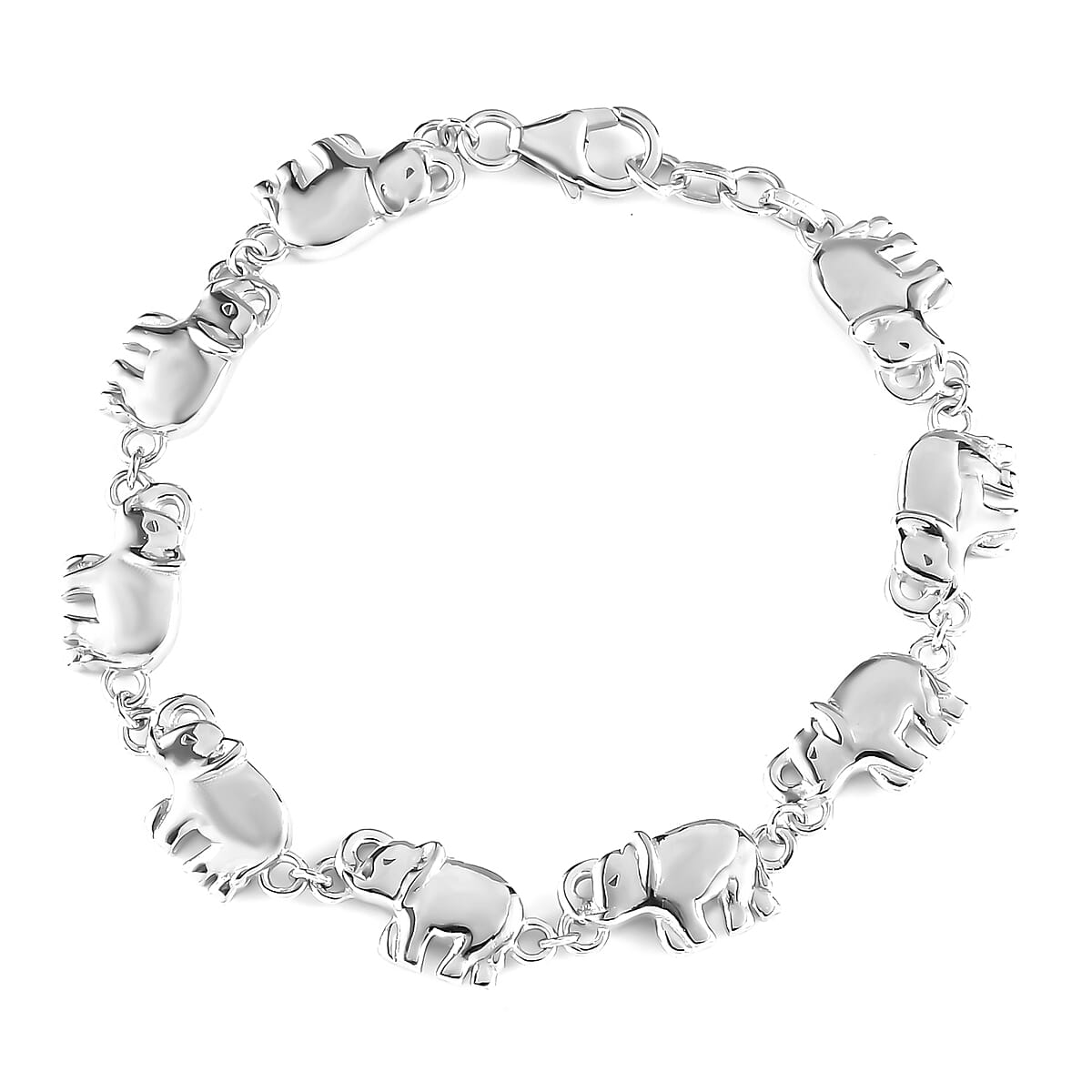 Platinum Over Sterling Silver Elephant Bracelet (8.00 In) 10.15 Grams