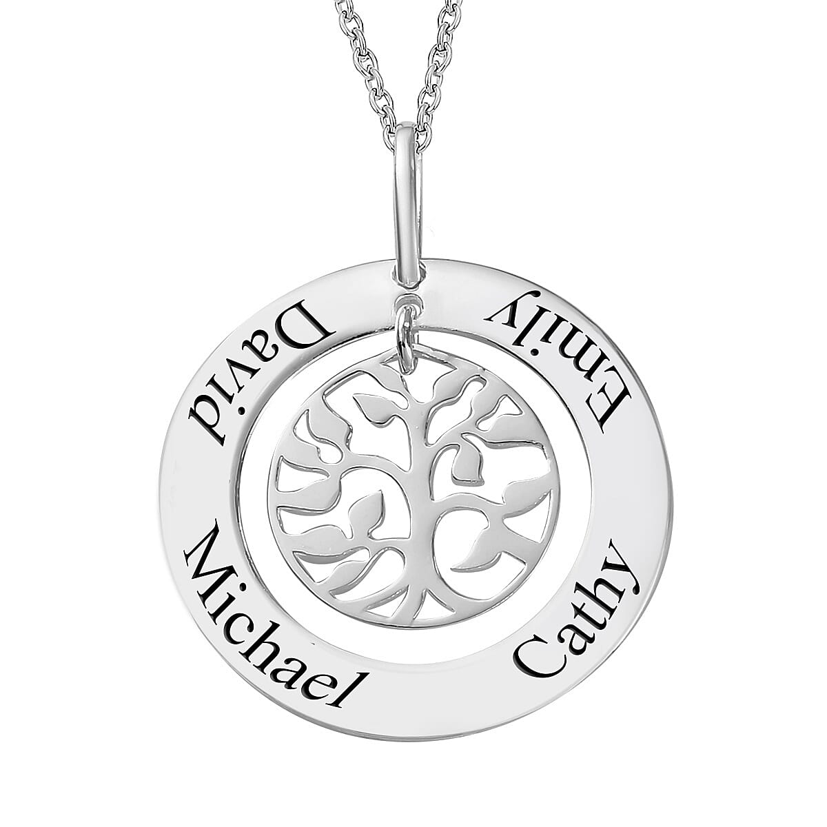Platinum Over Sterling Silver Family Tree Name Pendant Necklace 20 Inches 4.80 Grams