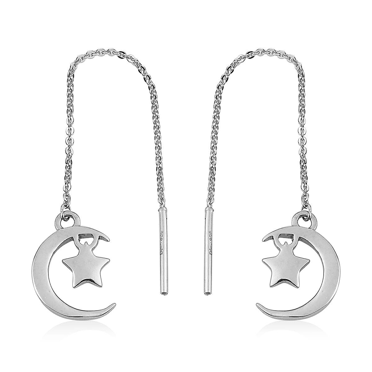 Platinum Over Sterling Silver Moons Star Dangle Earrings 2.20 Grams