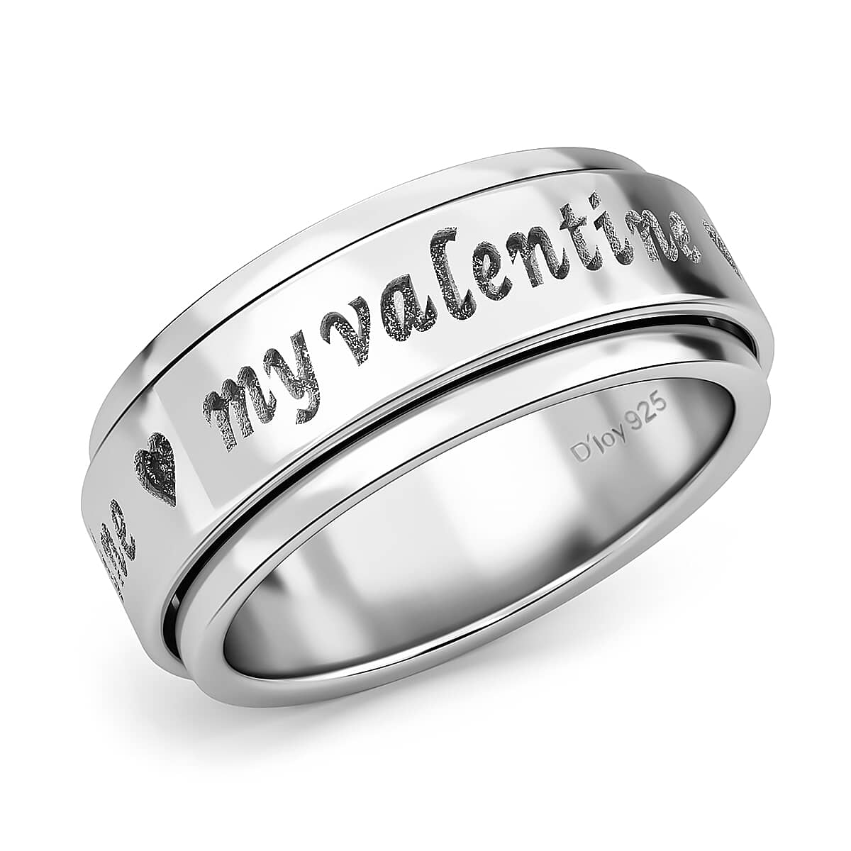 Platinum Over Sterling Silver My Valentine Spinner Ring, Anxiety Ring for Women, Fidget Rings for Anxiety for Women, Stress Relieving Anxiety Ring, Promise Rings (Size 9.0) (6.20 g)