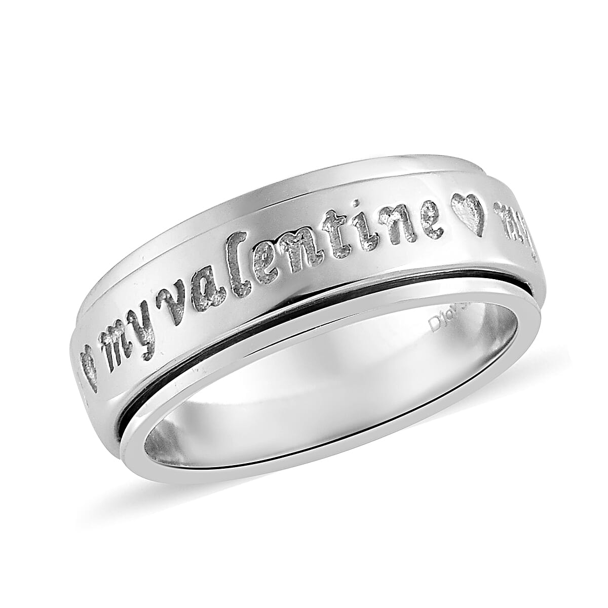 Platinum Over Sterling Silver My Valentine Spinner Ring (Size 11.0) 6.20 Grams