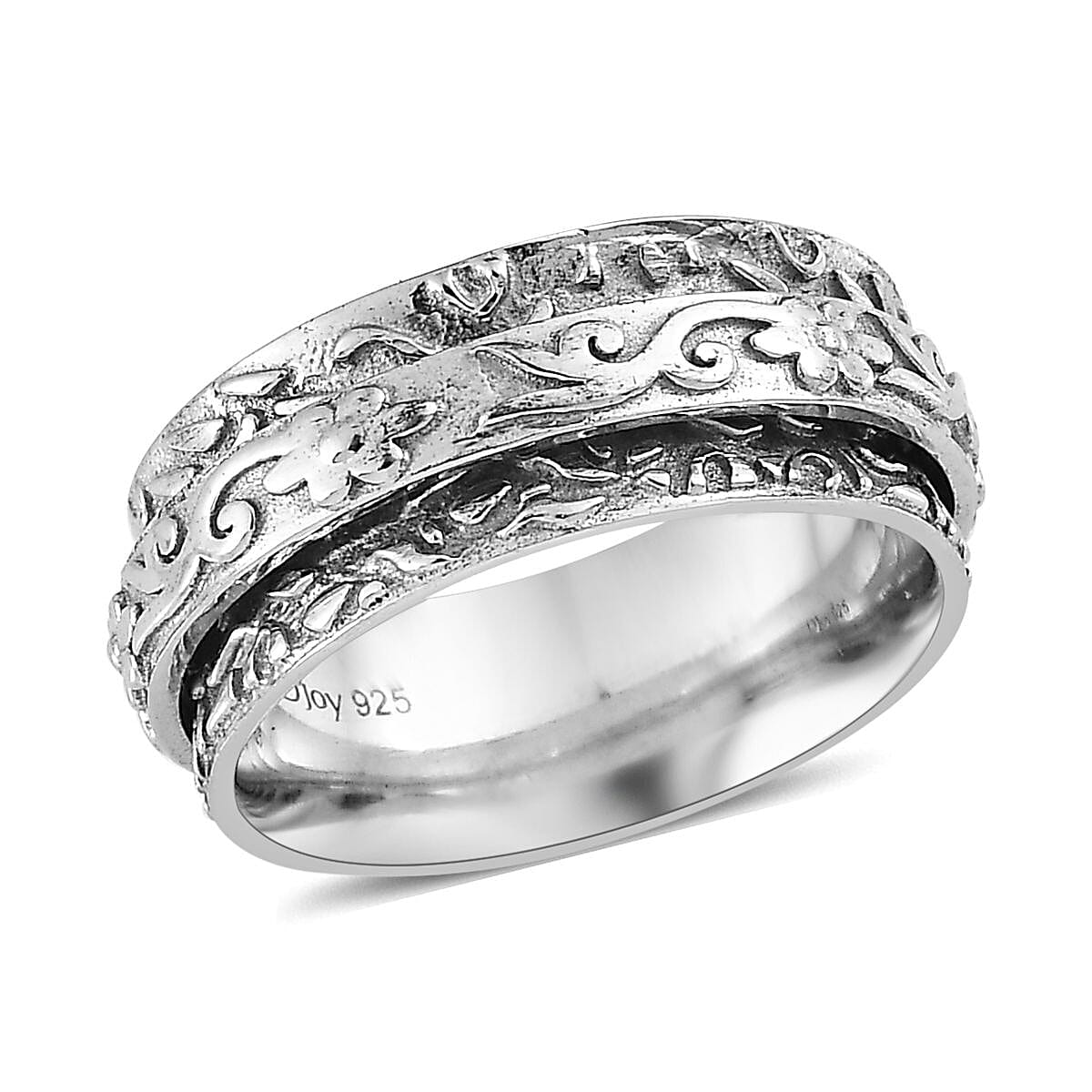 Platinum Over Sterling Silver Spinner Band Ring (Size 5.0) 6.25 Grams