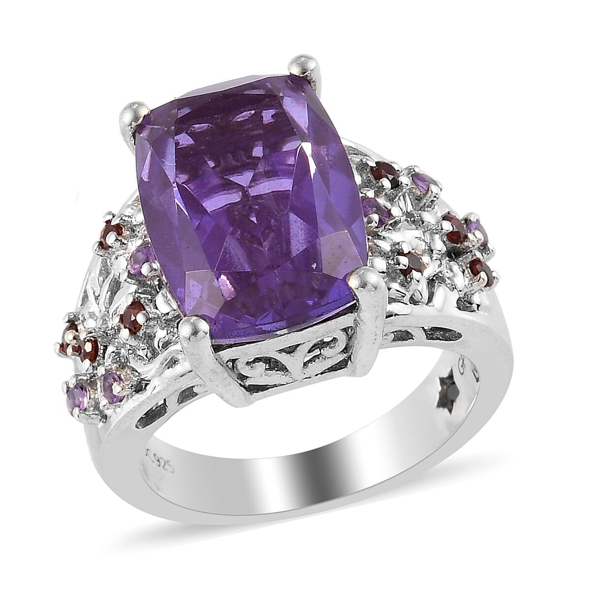 Playa Quartz (Triplet) and Multi Gemstone Ring in Platinum Over Sterling Silver (Size 6.0) 11.80 ctw