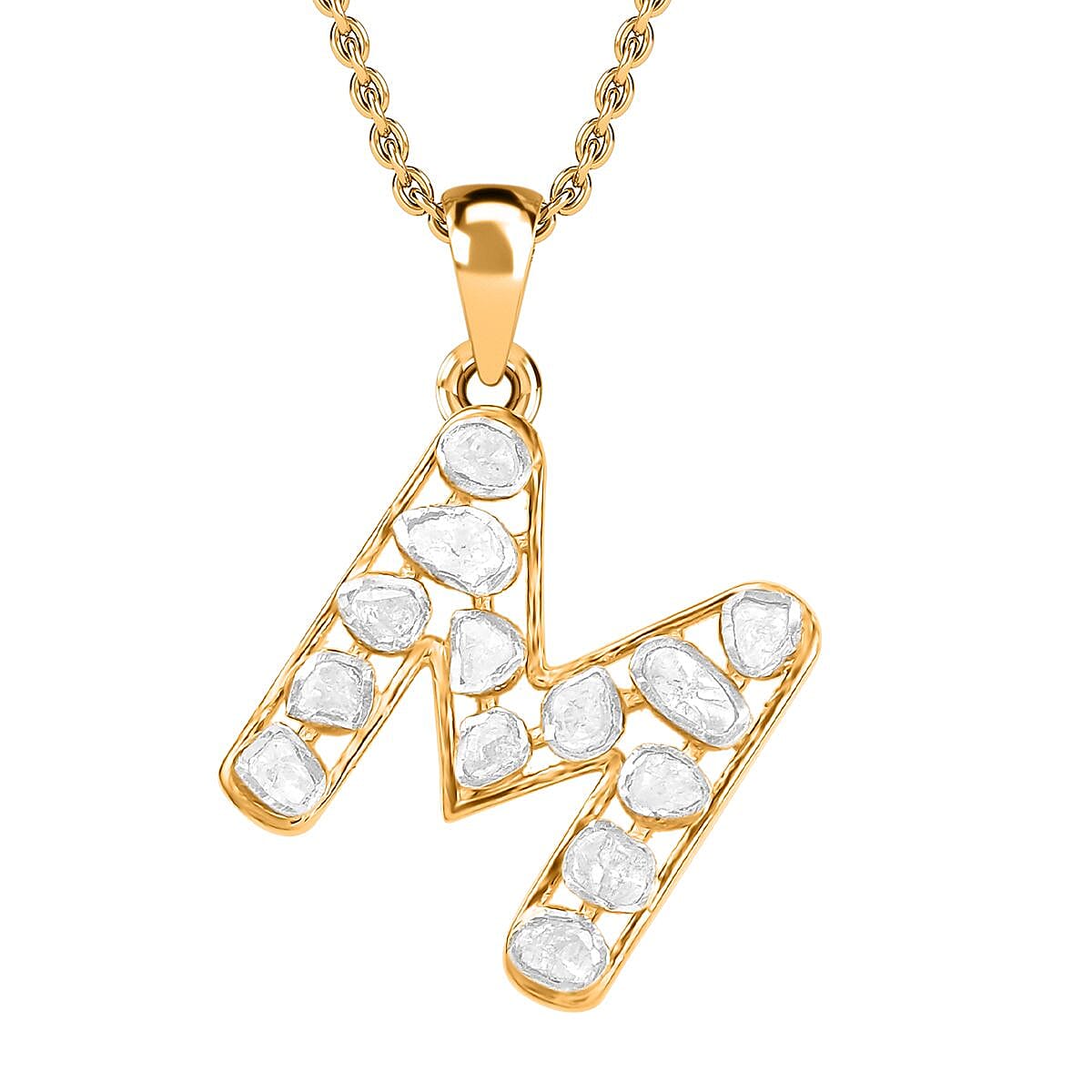 Polki Diamond 0.50 ctw Initial M Pendant Necklace in 18K Yellow Gold Over Sterling Silver 20 Inches