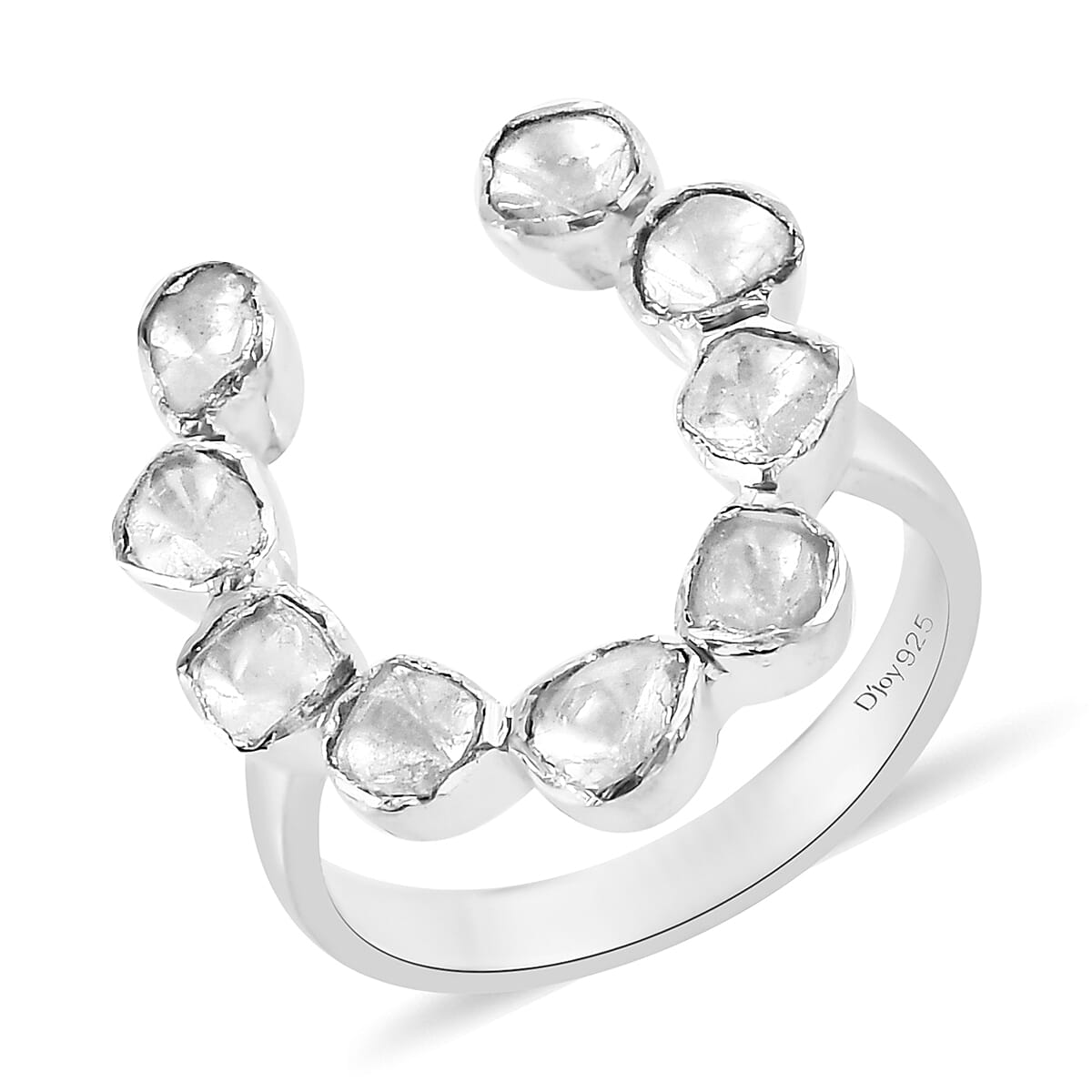 Polki Diamond Horseshoe Ring in Platinum Over Sterling Silver (Size 10.0) 0.50 ctw