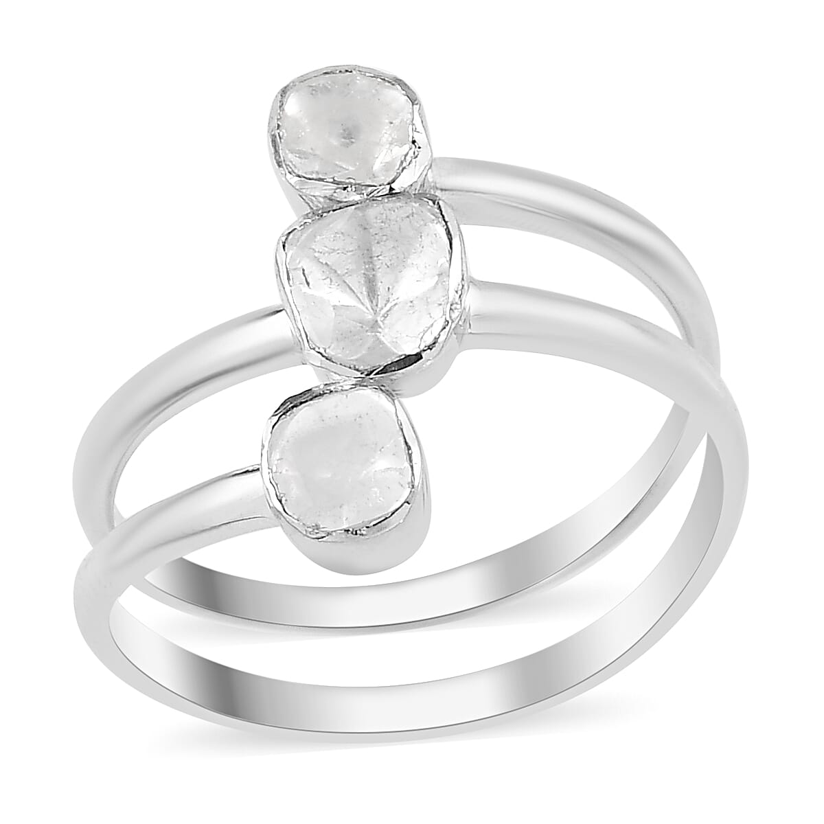 Polki Diamond Open Split Shank Trio Ring in Platinum Over Sterling Silver (Size 7.0) 0.50 ctw