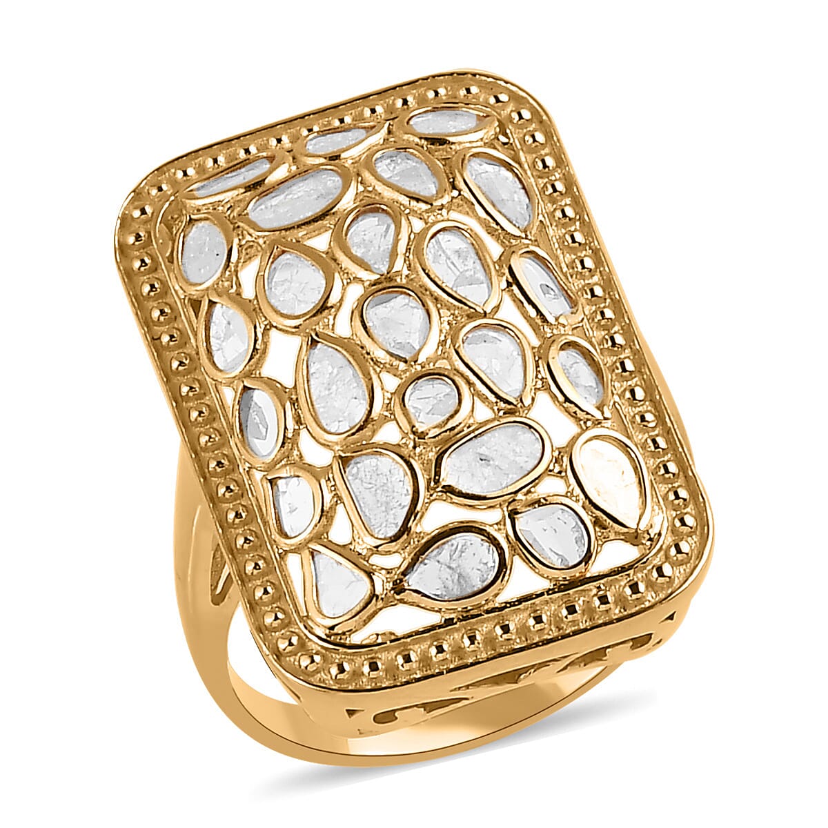Polki Diamond Ring in 14K Yellow Gold Over Sterling Silver (Size 7.0) 1.00 ctw